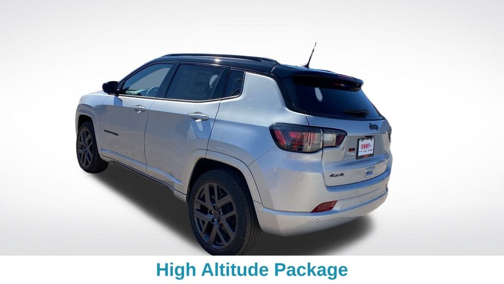 Silver Zynith Metallic Clearcoat 2025 Jeep Compass Limited 4WD 8-Speed Automatic 2.0L I4 DOHC 10.1" Touchscreen Display, Alexa Built-In, Auto High-beam Headlights, Automatic temperature control, Body Color Wheel Flares, Cluster 10.25" TFT Color Display, Delay-off headlights, Front dual zone A/C, Front fog lights, Fully automatic headlights, Gloss Black Surround/Neutral Gray Rings, GPS Navigation, HD Radio, Heated front seats, High Altitude Package, Integrated Voice Command w/Bluetooth, LED Low/Highbeam Projector Headlamps, Neutral Gray Exterior Accents, Neutral Gray Exterior Badging, ParkView Rear Back-Up Camera, Power Front/Fixed Rear Full Sunroof, Premium Alpine Speaker System, Premium LED Fog Lamps, Premium Taillamps, Rain sensing wipers, Rear window defroster, Rear window wiper, Remote keyless entry, Security system, SiriusXM w/360L, Speed control, Steering wheel mounted audio controls, Variably intermittent wipers, Wheels: 19" x 7.5" Aluminum Painted.