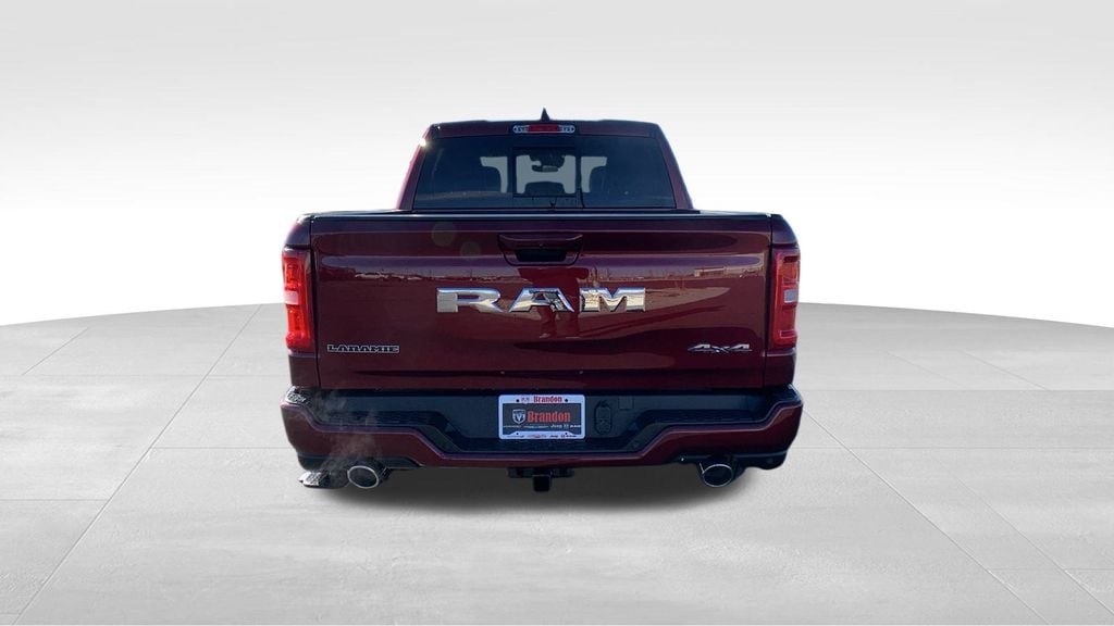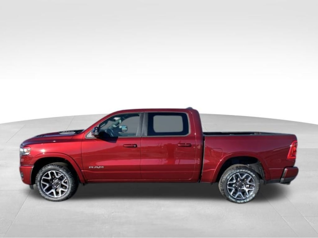 Delmonico Red Pearlcoat 2025 Ram 1500 Laramie 4WD 8-Speed Automatic 3.0L I6 3.92 Rear Axle Ratio, Anti-Spin Differential Rear Axle, Bed Utility Group, Dual-Pane Panoramic Sunroof, Front fog lights, Fully automatic headlights, Heated Front Seats, Heated Second Row Seats, Heated Steering Wheel, Laramie Level 1 Equipment Group, Leather Trimmed Bucket Seats, MOPAR Spray In Bedliner, Navigation System, ParkView Rear Back-Up Camera, Radio: Uconnect 5 Nav w/12.0" Display, Rain Sensitive Windshield Wipers, Remote Tailgate Release, SiriusXM w/360L, Sport Appearance Package, Sport Performance Hood, Ventilated Front Seats.