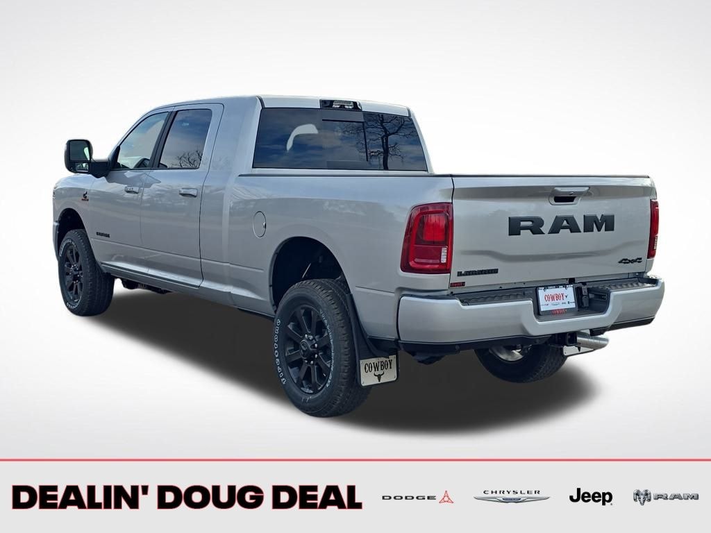 Silver Zynith 2026 Ram 2500 Laramie 4WD 8-Speed Automatic 6.7L I6 #1 Seat Foam Cushion, 115V Auxiliary Rear Power Outlet, 2 Way Rear Headrest Seat, 4 Way Front Headrests, Active Lane Management System, Adaptive Steering System, Anti-Spin Differential Rear Axle, Auto Dim Exterior Mirror, Auto High Beam Headlamp Control, Auto Power-Folding Mirrors, Auto-Dimming Exterior Passenger Mirror, Black Exterior Truck Badging, Black Wheel Center Hub, Body Color Grille Surround, Bucket Seats, Cold Weather Group, Drowsy Driver Detection, Dual Wireless Charging Pad, Engine Block Heater, Exterior Mirrors Courtesy Lamps, Front Seat Back Map Pockets, Full Length Upgraded Floor Console, Gloss Black Grille Billets/Accents, Heated Front Seats, Heated Second Row Seats, Heated Steering Wheel, High Back Seats, Laramie Level 1 Plus Equipment Group, Leather Trimmed Bucket Seats, LED Bed Lighting, Mirror Running Lights, MOPAR Deployable Bed Step, MOPAR Winter Front Grille Cover, Night Edition, Power 2-Way Driver Lumbar Adjust, Power 2-Way Passenger Lumbar Adjust, Power Adjust 8-Way Driver Seat, Power Adjust 8-Way Front Passenger Seat, Power Adjust Mirrors, Power Adjustable Convex Aux Mirrors, Power Heated Fold Telescope Mirrors w/Memory, Power Telescoping Mirrors, Quick Order Package 24H Laramie, Rain Sensitive Windshield Wipers, Rear 60/40 Folding Seat, Remote Tailgate Release, Sport Performance Hood, Surround View Camera System, Towing Technology Group, Traffic Sign Recognition, Trailer Reverse Guidance, Trailer Tire Pressure Monitoring System, Wheels: 20" x 8" Black Painted Aluminum. Price includes: $1000 - 2026 National Bonus Cash . Exp. 01/05/2026